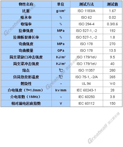 高强度,高刚性,耐化学性好,广泛应用于电子电器、汽车、工业类产品的配件。